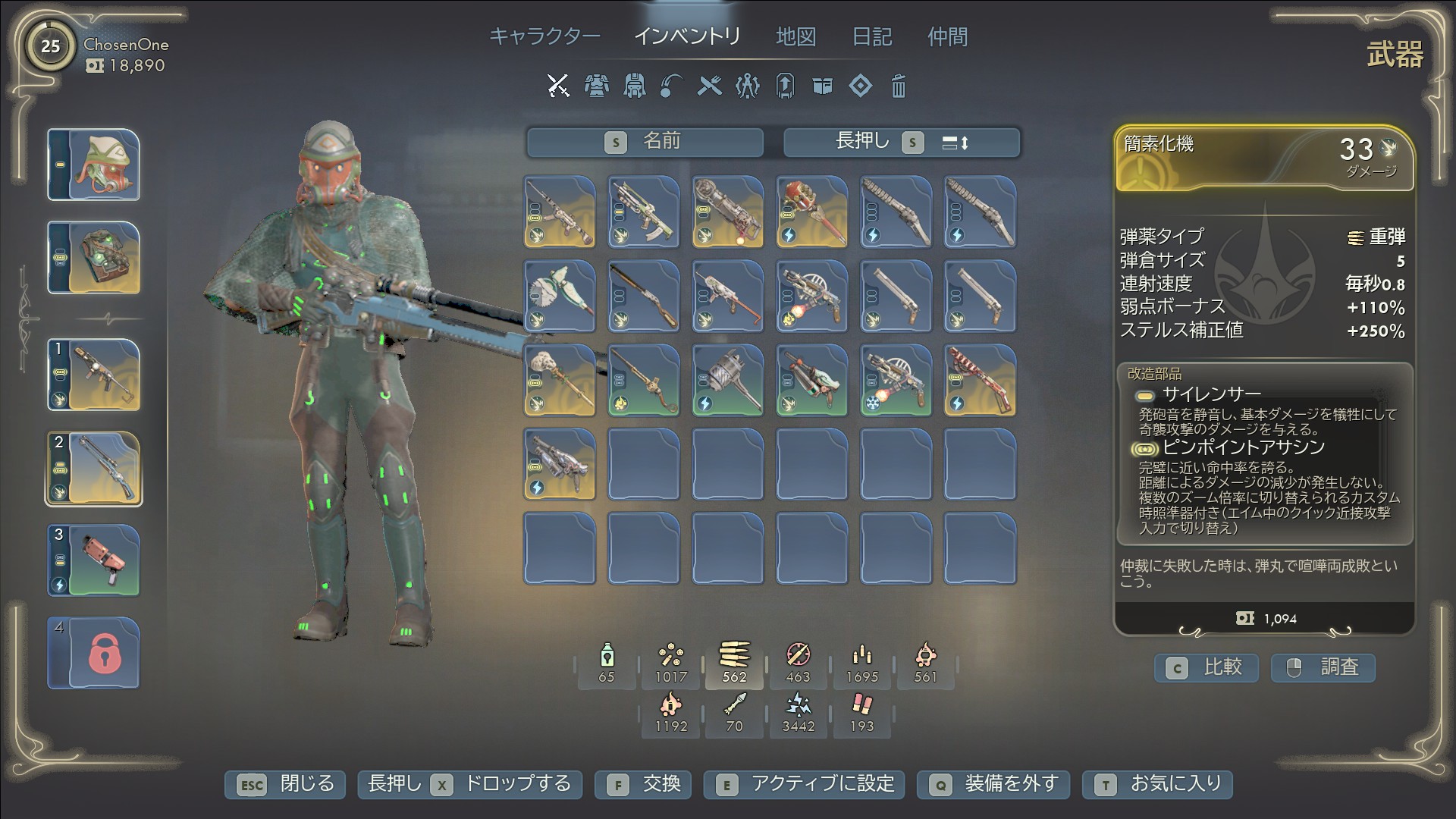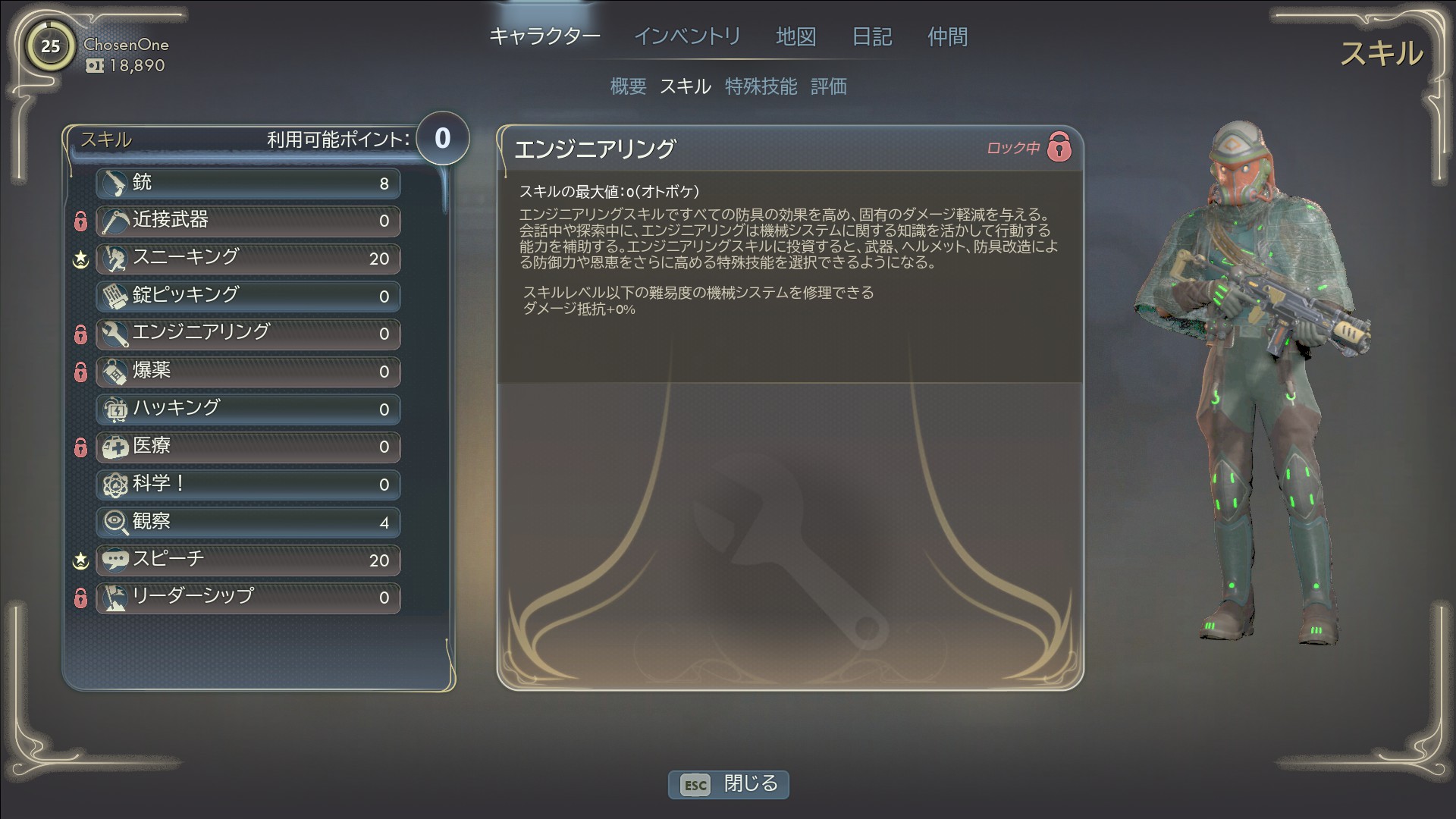 今回は全く振らなかったものの、正直振っておけばよかったと思うスキル。中盤以降は狙撃による奇襲攻撃を多用するため、TTDの使用機会もとにかく多いです。ガジェットゲージを増やすためでもありますが、地味に生物ダメージの増加もありがたいので銃に8も振るくらいなら科学に多少振っておけばよかったなーと思ったり。