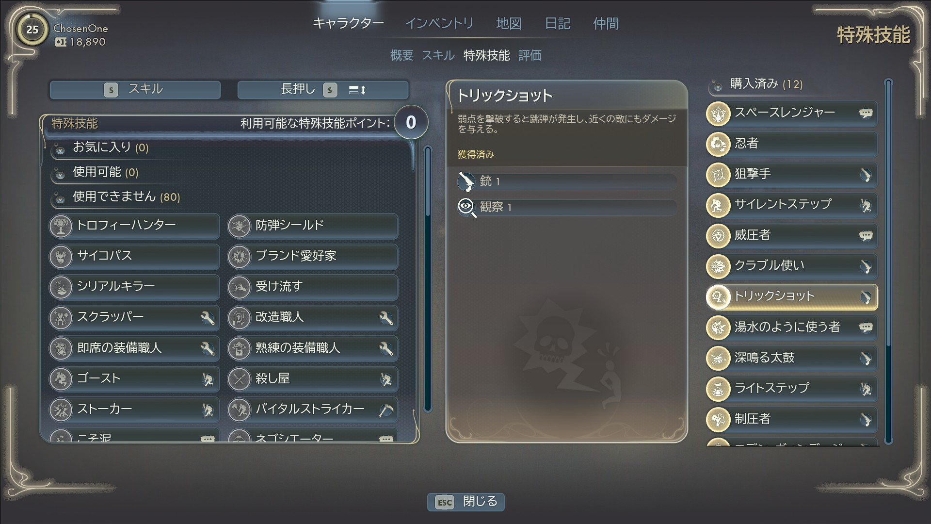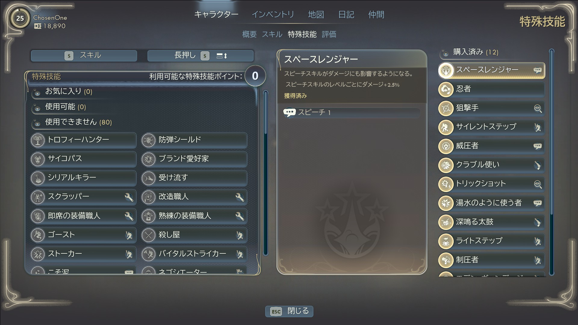 必須クラスの特殊技能はこれら3つくらいなので、残りはお好みで。